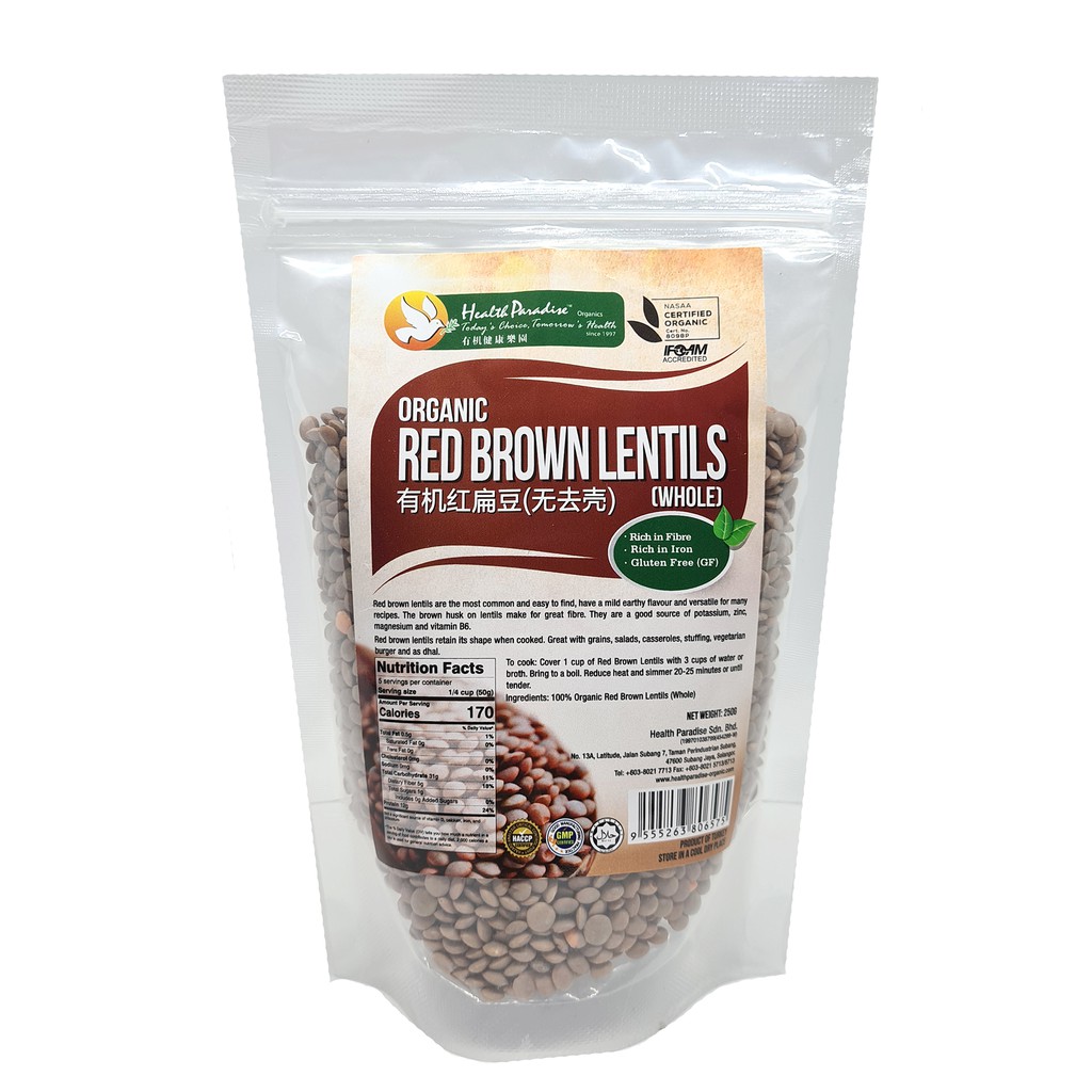 Health Paradise Organic Red Brown Lentils ( Whole ) 250gm Lentil Gluten Free GF, Vegan, Vegetarian | Shopee Singapore